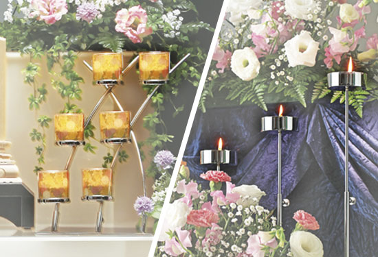 気品ある輝きが演出する神秘的な空間。スペースにあわせて様々な演出が出来る燭台です。